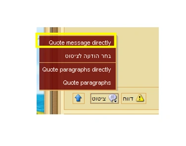 ציטוט - בכדי לצטט הודעה של משתמש אחר, יש כפתור בסוף ההודעה שלו אשר נקרא "ציטוט", לחץ על כפתור זה.
