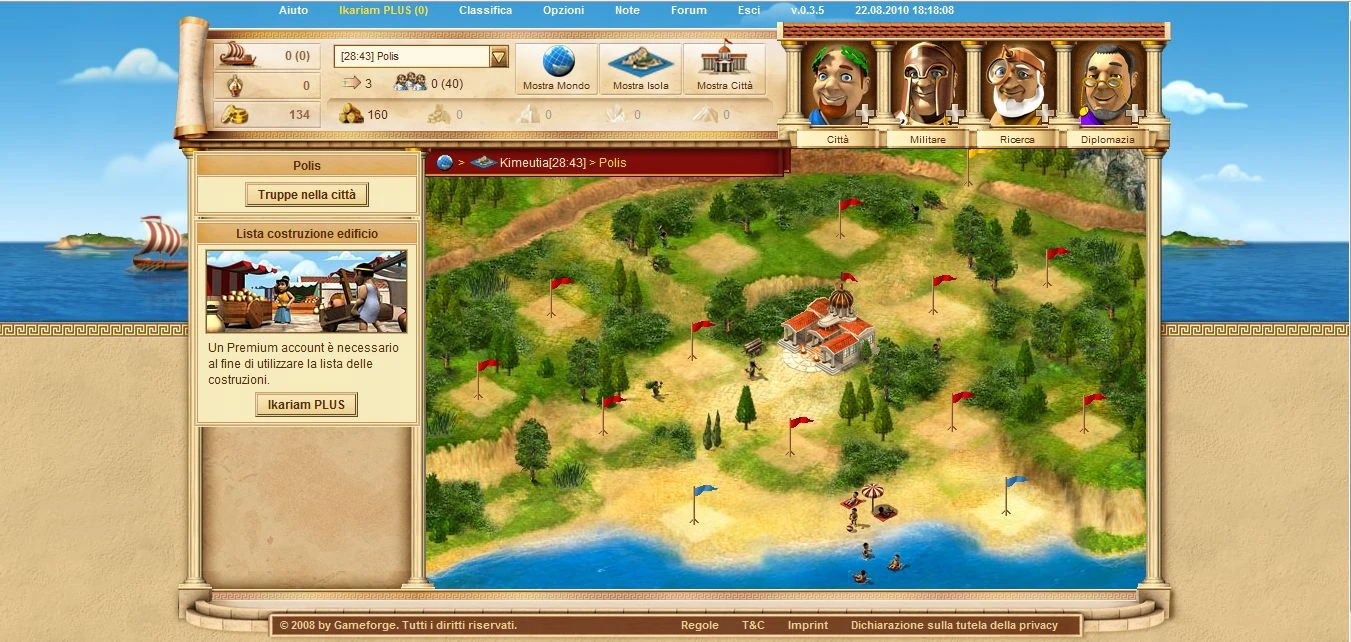 Appena ti registri in Ikariam, verrai indirizzato in una pagina molto simile a questa: