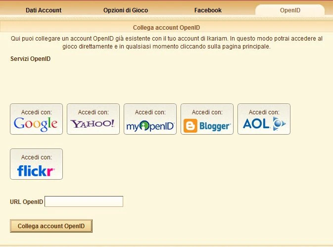 Cliccando sul link "Opzioni" in alto in qualsiasi schermata di gioco, puoi accedere alle impostazioni del tuo account di gioco.