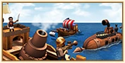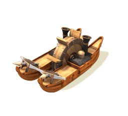 Een uitvinding die zelfs Heron zou verbazen! De Stoomram gebruikt een gigantische Aeolipile en tegelijkertijd schepraderen om met een geweldige kracht en snelheid op de schepen van de tegenstander in te beuken. Dit schip heeft ook niet zo`n grote bemanning nodig.