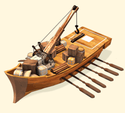 Elk Handelsschip kost meer dan het vorige. Handelsschepen zijn te koop in de Handelshaven en kunnen niet vernietigd worden. Elk handelsschip kan 500 goederen of hetzelfde aantal in eenheden meenemen (elke eenheid heeft een waarde in transport gewicht). Handelsschepen zijn beschikbaar voor gebruik in elk van je steden zonder dat je hen daarvoor moet verplaatsen.