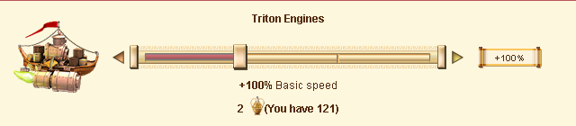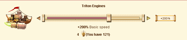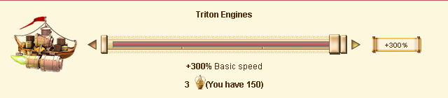 These engines are crafted in Triton, son of Poseidon's, temple and can be mounted on the outside of our trade ships. For a fair Ambrosia donation, Prometheus will fill the engines of all ships used with a divine fire from Hephaestus' forge, which will drive the ships across the seas with divine powers.