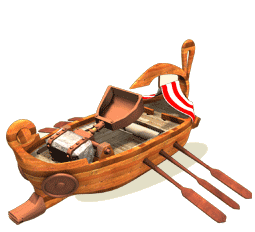 The catapult at the deck of the ship is smaller than its counterpart on land due to a lack of space. The ocean waves make it very imprecise, but it does fire clay jugs of burning oil, which leave dangerous little oil slicks behind at sea.