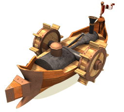 Just like the ram ship, the steam ram is fully equipped with a ram spur at its bow. However, it is a considerably more advanced version. Due to its steam engine, this ship can accelerate even more speedily and can therefore inflict a larger amount of damage on the enemy. The steam ram is probably the most dangerous ship at the front line.